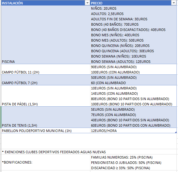 Entre las instalaciones municipales con que cuenta Aguas Nuevas para ocio se encuentran las siguientes: